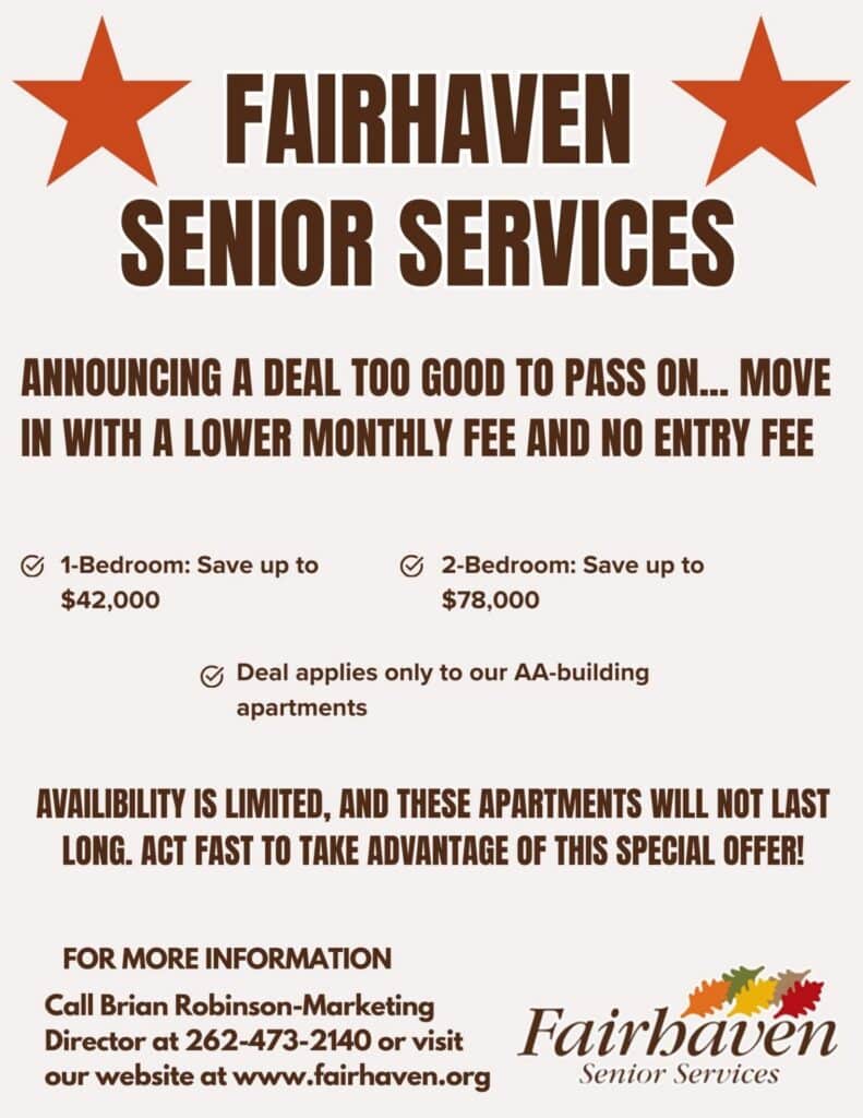 Fairhaven “adds life to years” by offering independent apartment-style living in addition to our supportive living, assisted living, and skilled care options. Our campus is located in the midst of a residential neighborhood within walking distance to downtown stores, churches, the library, and the University of Wisconsin – Whitewater.